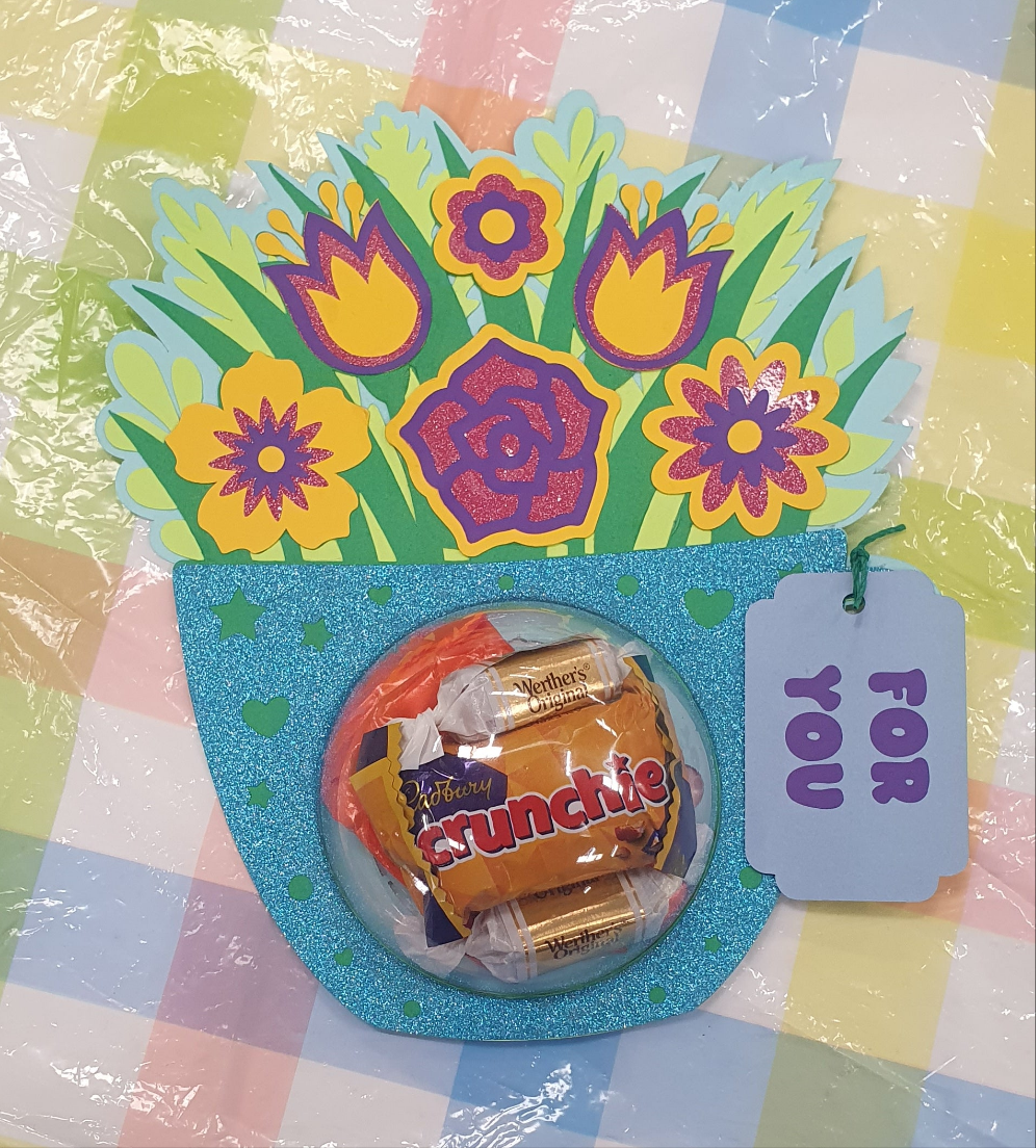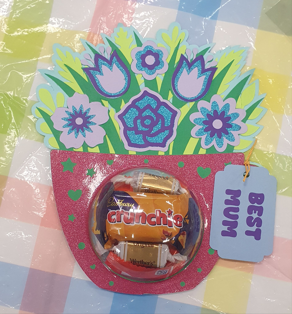 Surprise Mum with this enchanting flower cup dome - a beautiful blend of handcrafted flowers and sweet treats that creates the perfect Mother's Day momento!