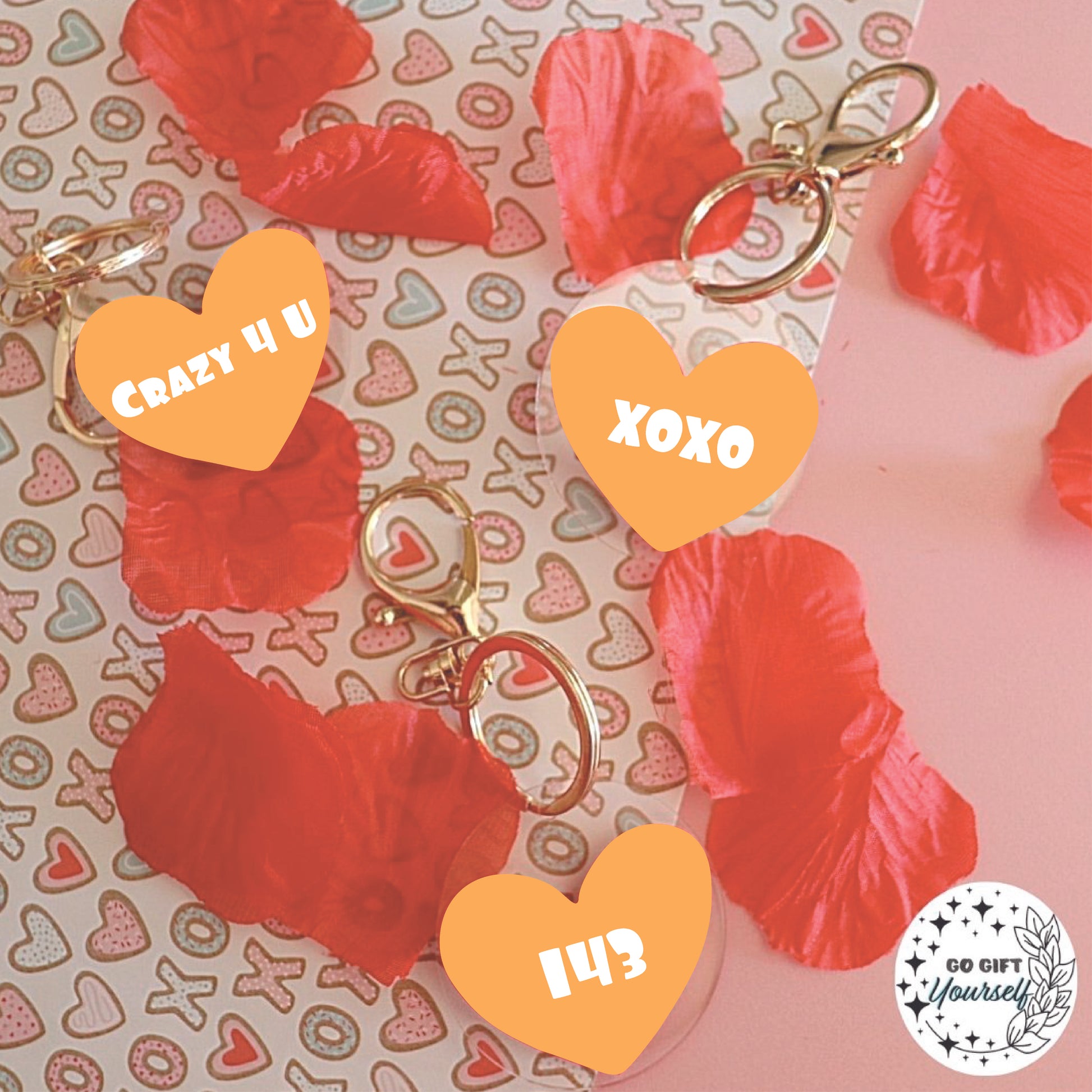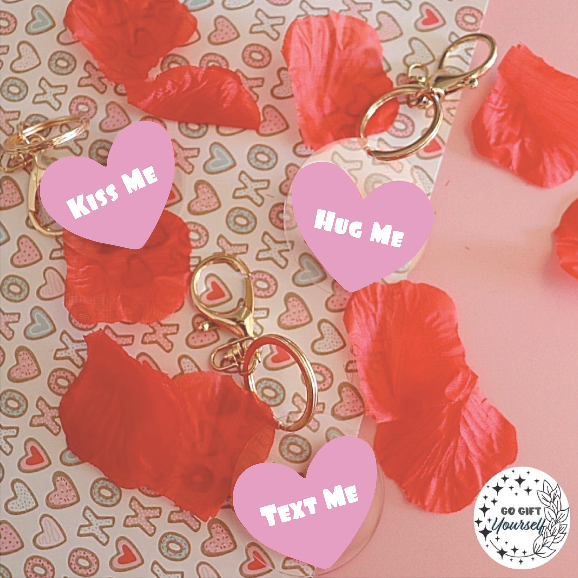 Show yourself or a special someone you love and appreciate them this Valentine's Day or any day! Beautiful Acrylic Keyrings, personalised with a loving quote!